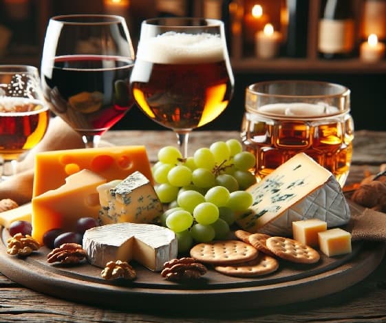 - Red Wine: For aged cheeses like cheddar or gouda, reach for a medium to full-bodied red wine. Wine’s bold flavors do complement the robust taste of aged cheeses.